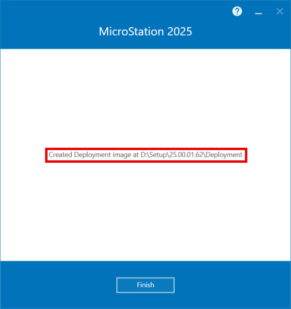 The deployment image is created by the system administrators for installing the application with the same installation configuration on multiple machines. The installation configuration includes the installation location, features, shortcuts, additional packages, and so on. Once created, users will be able to double-click Setup_MicroStationx64_25.00.01.062.exe available in the deployment image to install the application with the set configuration without the need of any user interaction or internet connection for component downloads. The deployment image can be shared in the network as a UNC path or pushed using SMS/SCCM.