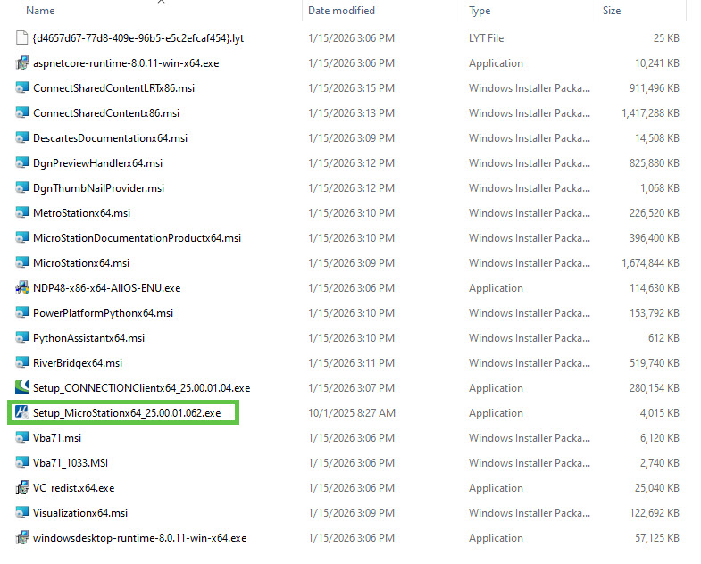 - Run the Setup_MicroStationx64_25.00.01.062.exe to install. This can be done: