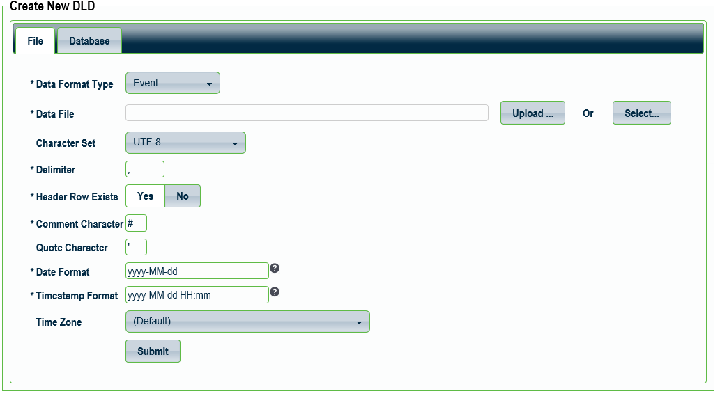 The process of creating or editing a DLD assumes that you have navigated to the Linear Analytics Services Web Interface and selected the Load Data page.