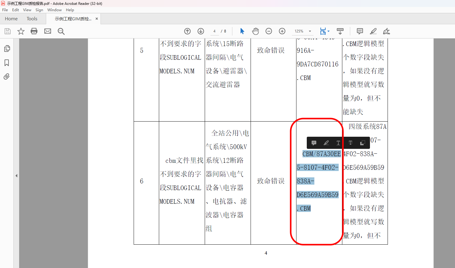 4.找到并复制检测报告中问题模型的GUID全名(含后缀名):