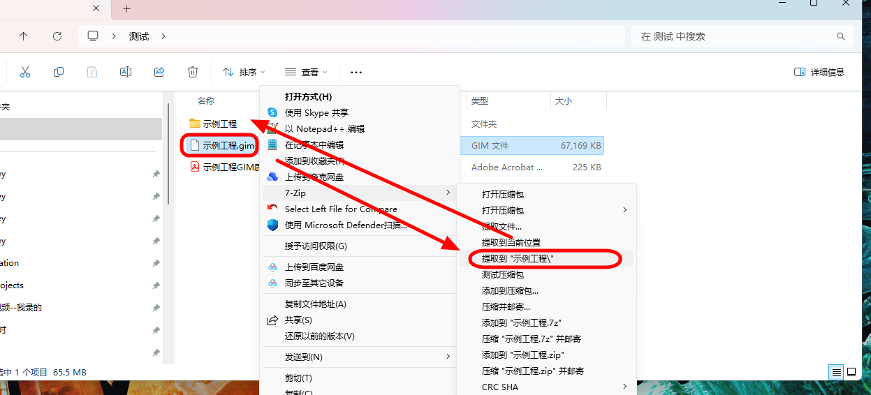 2.将GIM工程文件拷贝到合适的路径下,使用7z或者其他工具解压: