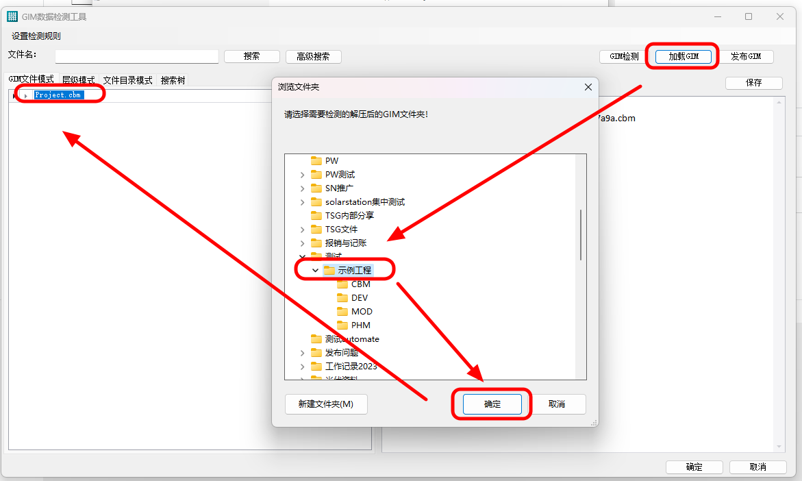 3.在GIM数据检测”点击“加载GIM”按钮,选择解压后的文件夹: