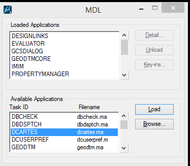 1.) Utilities > Key-In > MDL LOAD DCARTES