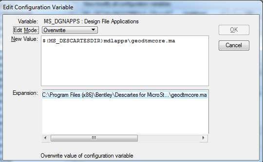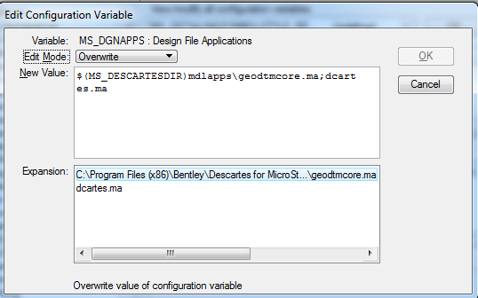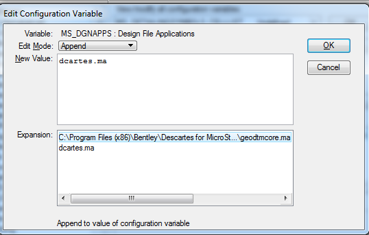 NOTE: If you use the "=" then it will wipe out any values places in the MS_DGNAPPS variable defined for MicroStation at install time.