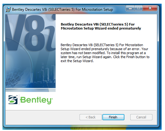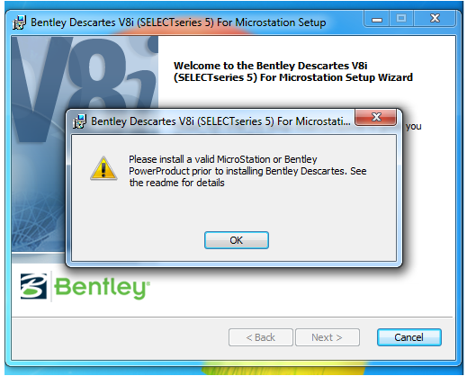 Please install a valid MicroStation or Bentley Powerproduct to install Bentley Descartes. See read me file