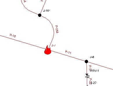 When a Pipe Break is active, an icon will appear in the drawing page, showing where this will occur.