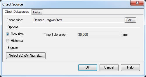 For the Remote Server, enter the server name if WaterGEMS is on a different machine than the Citect Server. If WaterGEMS and the Citect are on the same machine, this does not need to be provided. For the Authentication, if a user name and password is required, include that here. Once this information in filled in, choose Test Connection and make sure you get the "Connection succeeded" message. Click OK until Citect Source window is active.