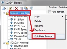 To locate this feature, click the SCADA Signals button on the Configure tab to open the SCADA Signals window, then right click on the folder label and choose "Edit Data Source..."