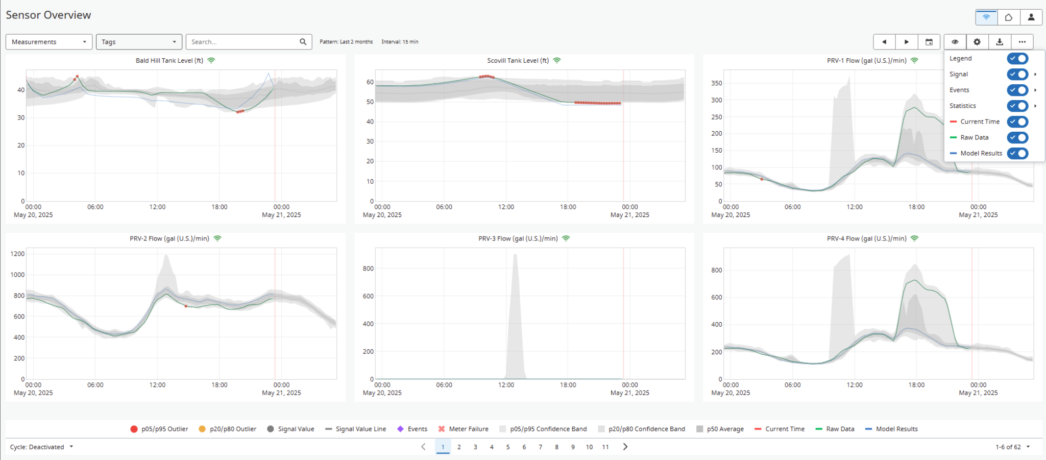 To see the comparison between the modelled and measured data, the simplest workflow is to go to Network Monitoring >> Sensor Overview >> and turn on model results. Model results will be displayed as a blue line in the graphs.