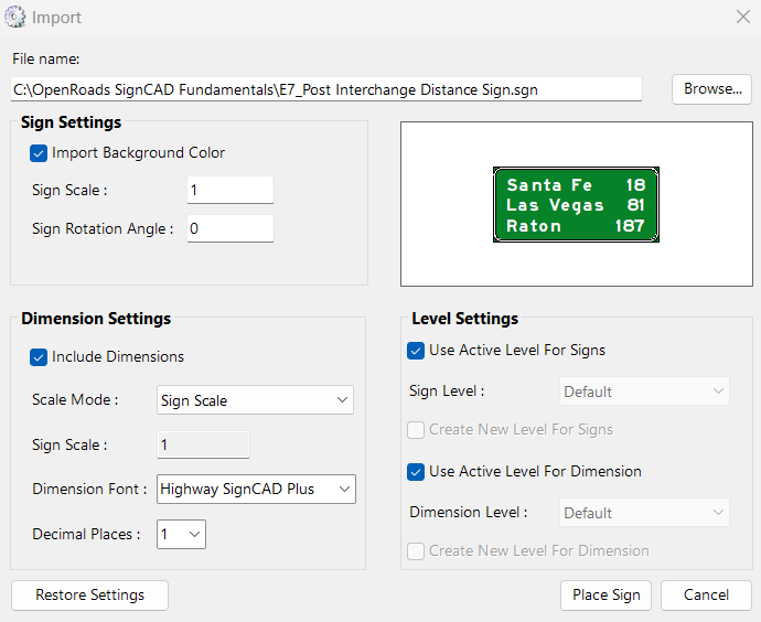 HOW TO DEFINE THE DEFAULT IMPORT SETTINGS (OpenRoads SignCAD 2025 and 2024)