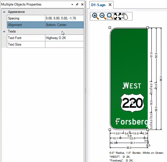 Step 6: Adjust the object spacing and alignment in the Multiple Objects Properties and Text Properties.