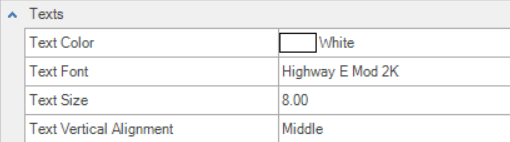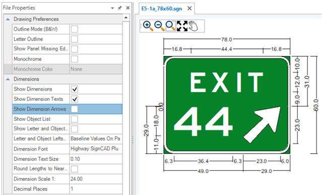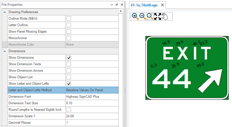 Dimension Font - Displays the font used for the dimensions. Another font can be selected from the drop-down menu. Highway SignCAD Plus is the default Dimension Font.