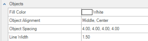 Step 12: The Objects group includes the default Fill Color, Object Alignment, Object Spacing and Line Width settings for the active file.