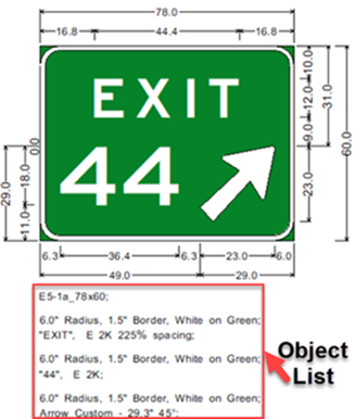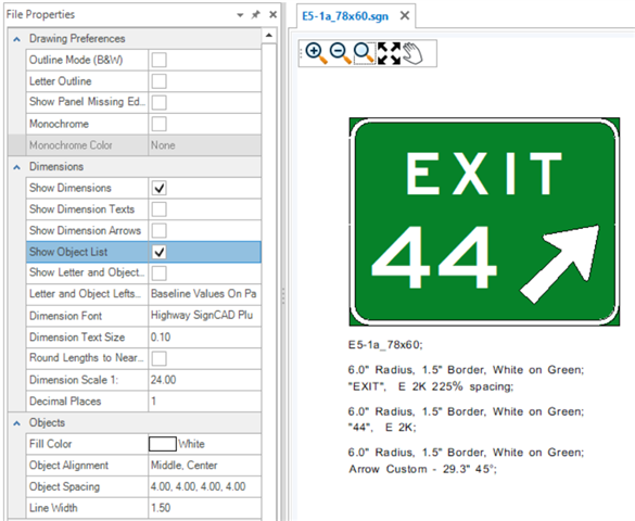 Step 9: Under Dimensions, select Show Dimensions and Show Object List. The Object List provides information about the panel and elements in the panel. Unchecking Show Object List removes the panel and element information below the sign.