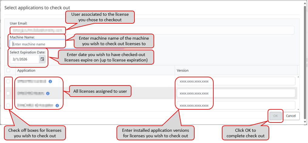 At this time, there is no way to choose which license is used on each machine. Because the same license may be used on multiple machines, even if you have multiple licenses, you may find the concurrent use of the product for the same user is restricted. The solution to this is to have different user IDs registered and assigned to each license.