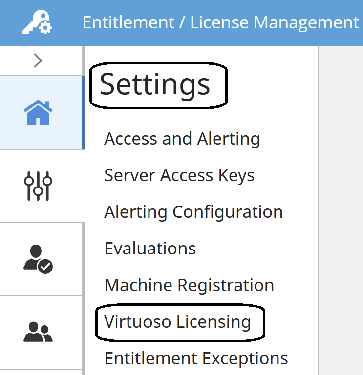 Alternatively, you can access the Virtuoso License from the side navigation - Settings > Virtuoso Licensing.