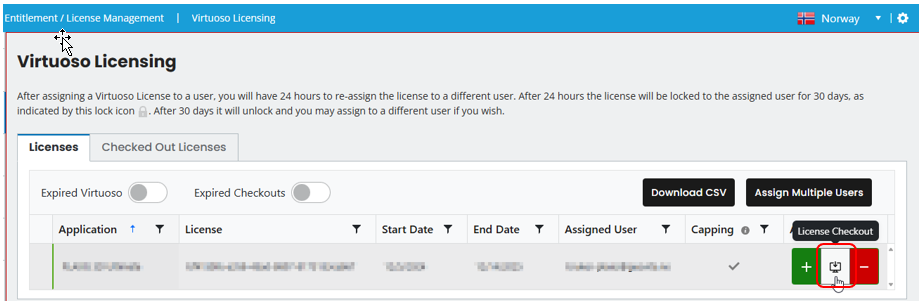After that initial 24-hour assignment period, the Virtuoso License will be locked for 30 days. At the end of that 30-day period, the Virtuoso License will be available for re-assignment, if necessary. Any re-assignment will start the 24-hour open user assignment period again, followed by a 30-day lock.