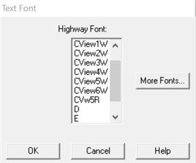 NOTE: OpenRoads SignCAD is compatible with the ClearviewHwy fonts but does not include them. If the Clearview fonts are installed on your computer in the C:\Windows\Fonts folder, but they do not show in the Text Font dialog, then check the standard of your working file since not all state standards in OpenRoads SignCAD have the Clearview fonts available for selection from the Text Font dialog (see Selecting Standards in OpenRoads SignCAD - OpenRoads | OpenSite Wiki - OpenRoads | OpenSite - Bentley Communities).