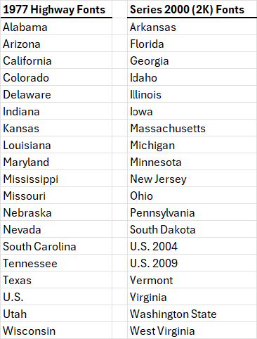 The 1977 Highway fonts do not have a "2K" after the font name shown in the object list below the sign.