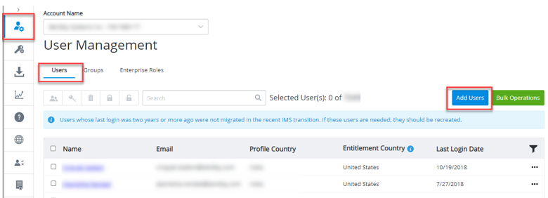 1. On the Users and Groups screen, click Users tab and then click the Add Users button in the upper right corner.