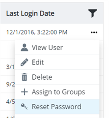 Click the three dots to the right of a user login, and select Reset Password from the contextual menu that appears. A password reset email will be sent to the user by which the user can create a new password.