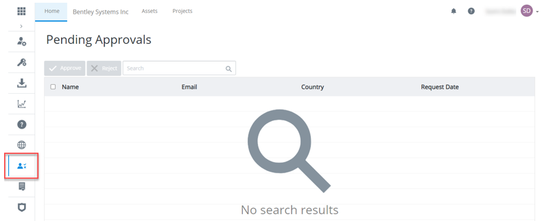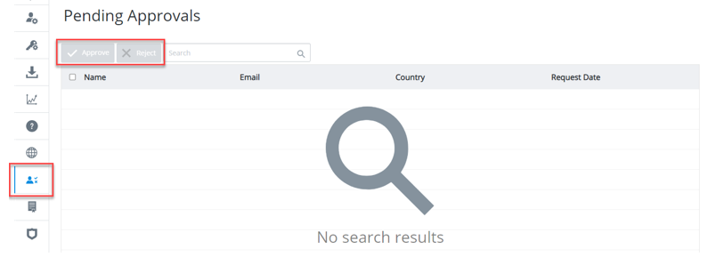 1. From the User Management screen click the Pending Approvals icon to display the users waiting to be approved.
