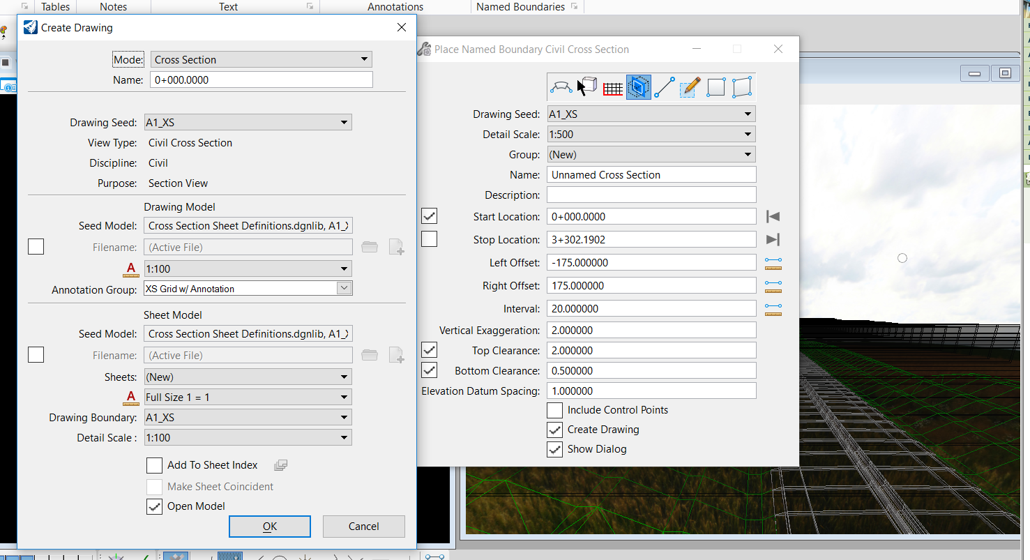 Answer : Turn ON one more windows with Default-3D model. Then you can create drawings for cross sections as it's mandatory to toggle ON 3D model in Open Roads Designer.