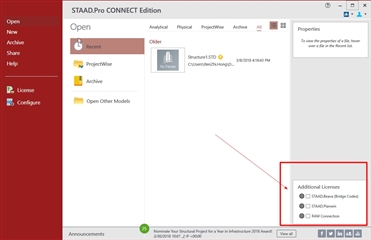 Staad 단 하나의 설치 파일로 기본 모듈 및 모든 서브 모듈이 함께 설치되므로, 프로그램 구동 시 고객사에서 보유하고 있는 해당 모듈의 라이선스가 실행되도록 주의를 기울여야 한다.
