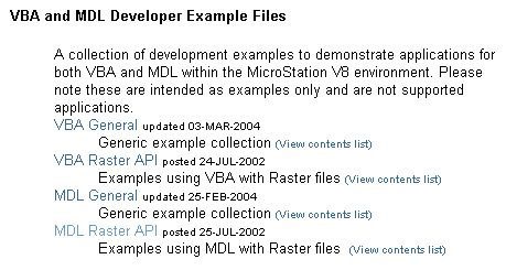 Bentley Developer Support is a great resource if you are having a logic problem or if you are trying to use an object that is not working as you expected. You can find examples created by the Developer Support group on MicroStation on the Web. They are located in a downloadable zip file called VBA General (V8VBAExamples.zip) located on the site's utilities page. It is accessible only to users who have a valid login and password. Scroll to the bottom of the page and you will see information about accessing these examples (Figure 4).