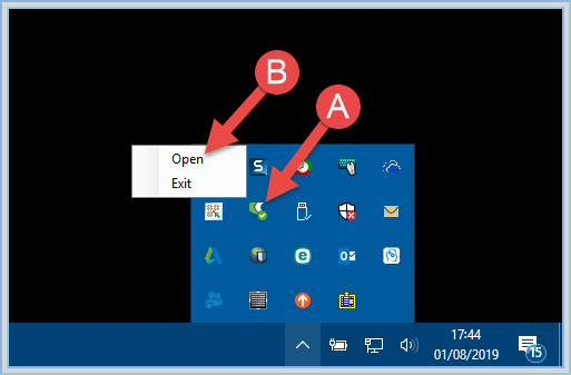 2. Click on the Icon and select OPEN option.