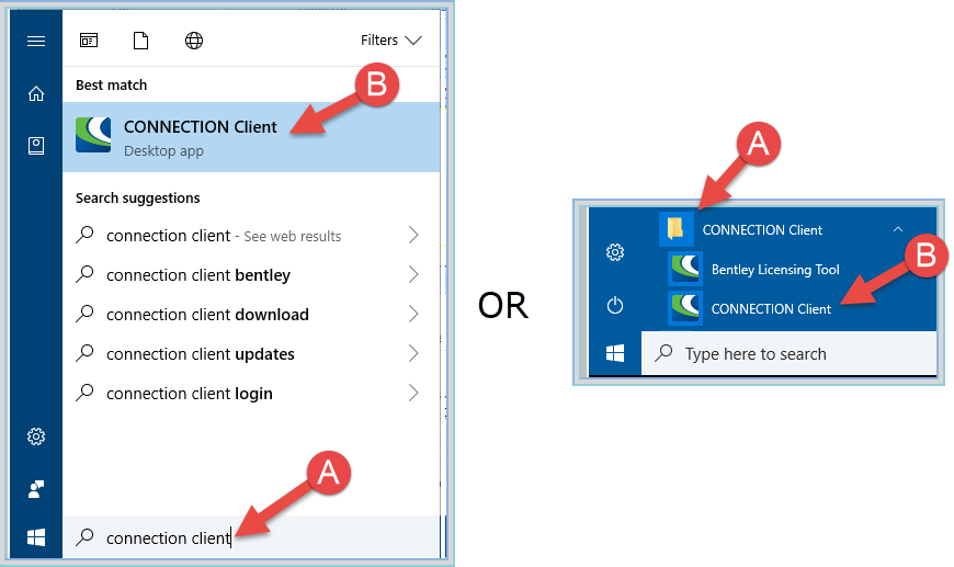 a. Type "CONNECTION Client" into the search bar, and select "CONNECTION Client" from best match listing