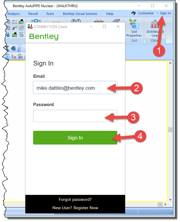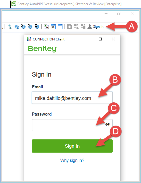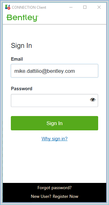 3. On the dialog, enter your Bentley credentials and press "Sign In" button