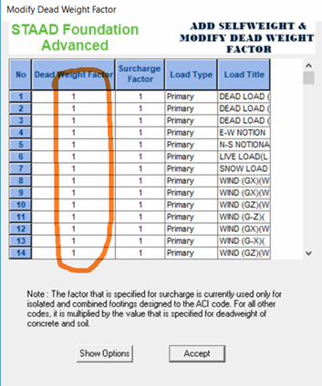 7.基础自重即恒载系数调整,请点击Loads & Factors中的Apply Self Weight And Dead Weight Factor进行设置。