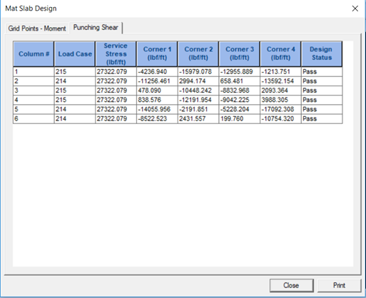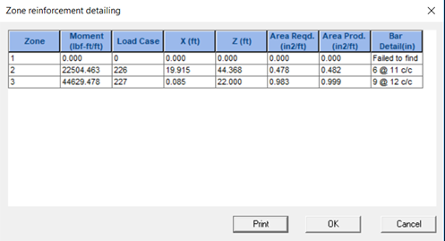 如果需要查阅详细报告,点击Details report,则显示如下更详细的弯矩和冲切信息。