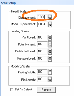 如果不能看到基础变形情况,是因为变形量太小,此时可调小Scale setup中Displacement的数值。