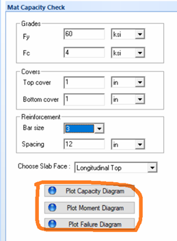 Capacity为根据预设的钢筋规格给出的筏板抗弯承载力分布图,Moment为根据实际弯矩给出的弯矩分布图,Failure对上述两个分布图进行比对,如果出现红色区域,表示此处配筋不足,未覆盖实际弯矩。