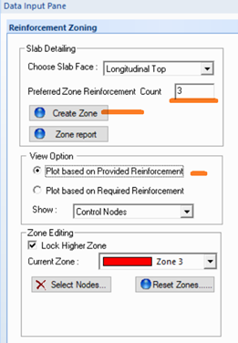 此项功能用于设置配筋带,配筋带分布在两个方向的顶面和底面,每个方向的每个面的配筋规格数量在Preferred Zone Reinforcement Count中设置,每一个规格即对应一个Zone.