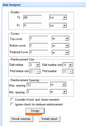 对筏板的钢筋和砼信息设置完毕后,点击Design,即刻生成弯矩设计摘要结果, 不过这只是一个轴向方向,可参10.3条所述重换一个轴向方向再次重复操作。