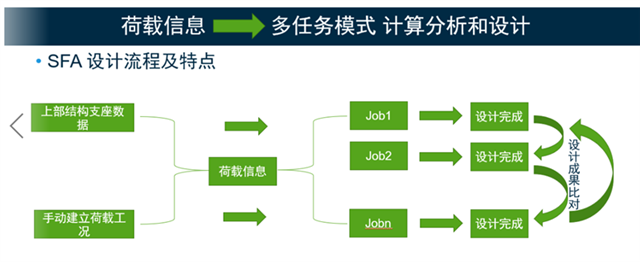SFA提供了多任务模式的计算分析和设计,可以对一份荷载源挂若干设计任务,每个任务有独立的荷载工况、基础类型和支座,无需创建多个设计模型文件。