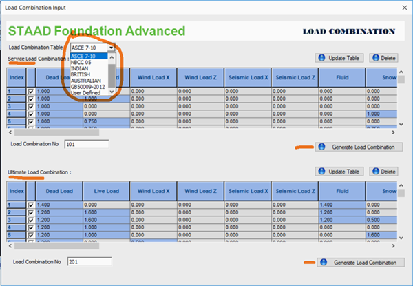 是否生成组合工况不是程序运行的必须步骤,这完全取决于工程师的决定。常规而言,我们需要根据规范生成一系列的组合。如果是自动生成,则直接点击Generate Load Combination生成组合工况。组合工况可以生成Service工况,也可也生成Ultimate工况,也可删减修改每个组合工况的系数。Service相当于中国规范中标准组合工况,Ultimate相当于中国规范中基本组合工况。