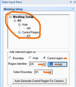 有时用户需要在局部开洞,首先需要在Add meshing regions中创建洞口的位置和大小,然后在Meshing setup中添加Hole来实现。