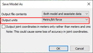 4. Choose the required output units to be saved in a new file > OK