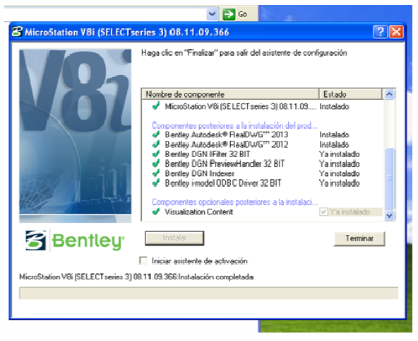 7) Presione botón Terminar cuando aparezca mensaje de que la instalación ha sido completada,