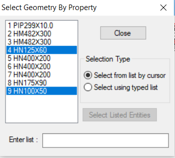 首先用“Select(选择)”——“By Specification”——选择“Property Name”——选中“HN100×50 & HN125×60”后如下图——点击“Tool”——用”Create New Group“建立一个专门用于STEEL MEMBER TAKE OFF命令的组。