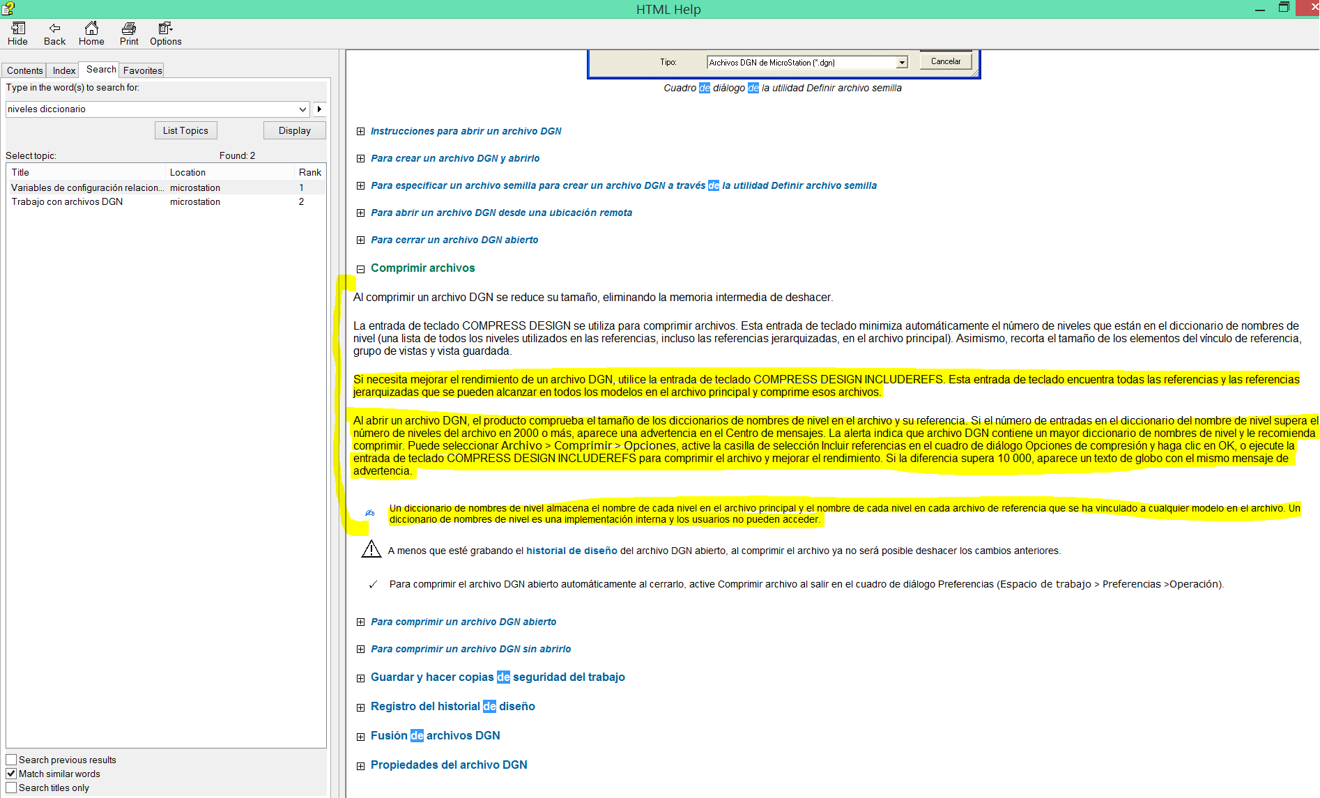 Al comprimir un archivo DGN se reduce su tamaño, eliminando la memoria intermedia de deshacer.