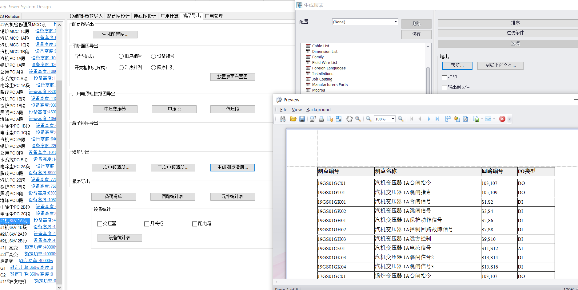 3. 生成二次电缆清册和测点清册