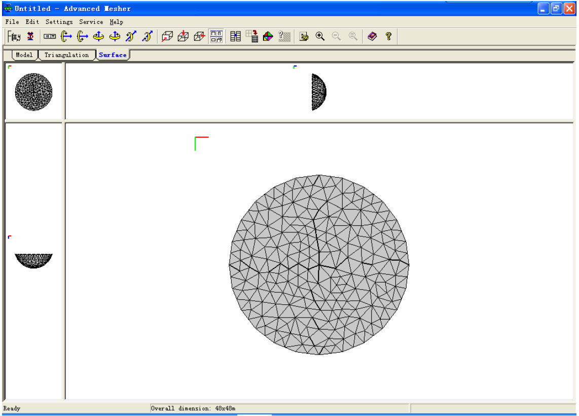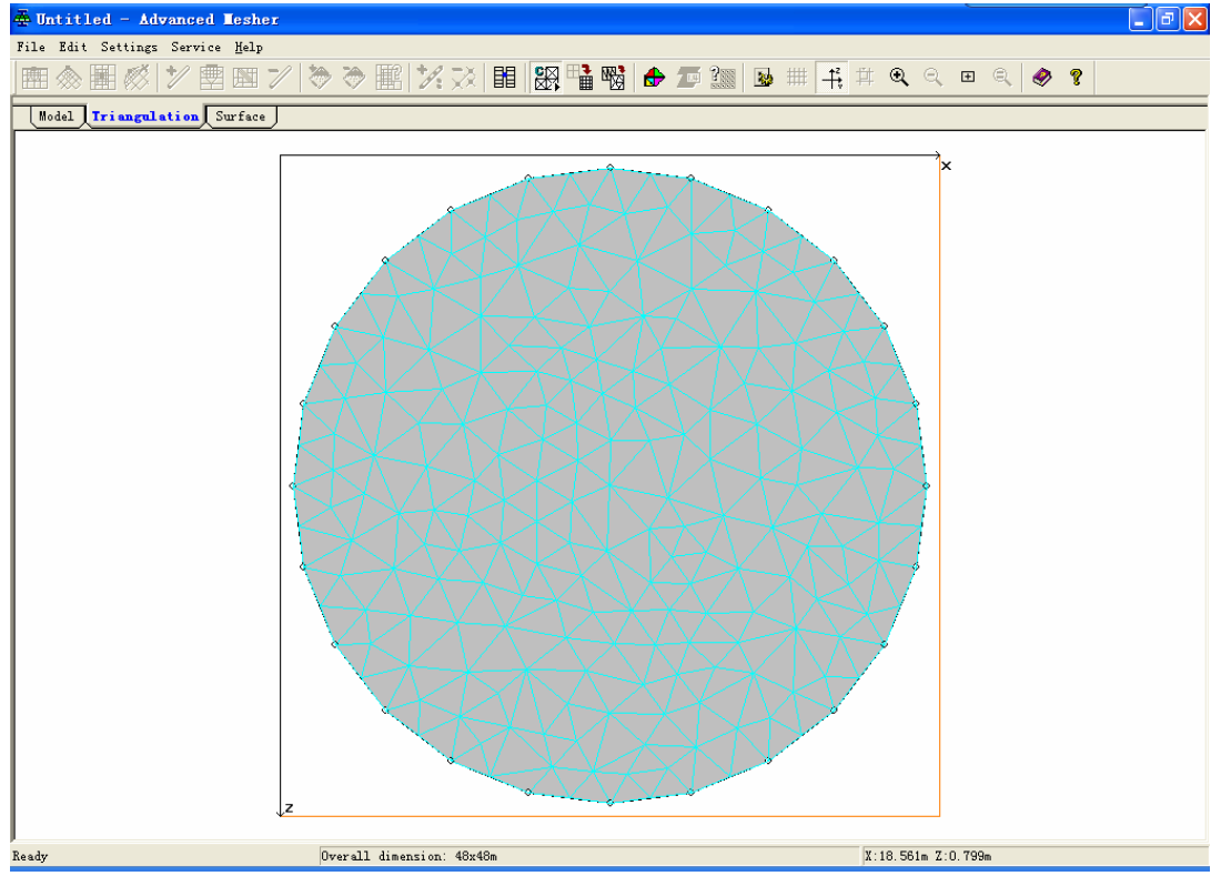 切换状态分项页从 Model 到Triangulation,对圆截面进行网格划分。