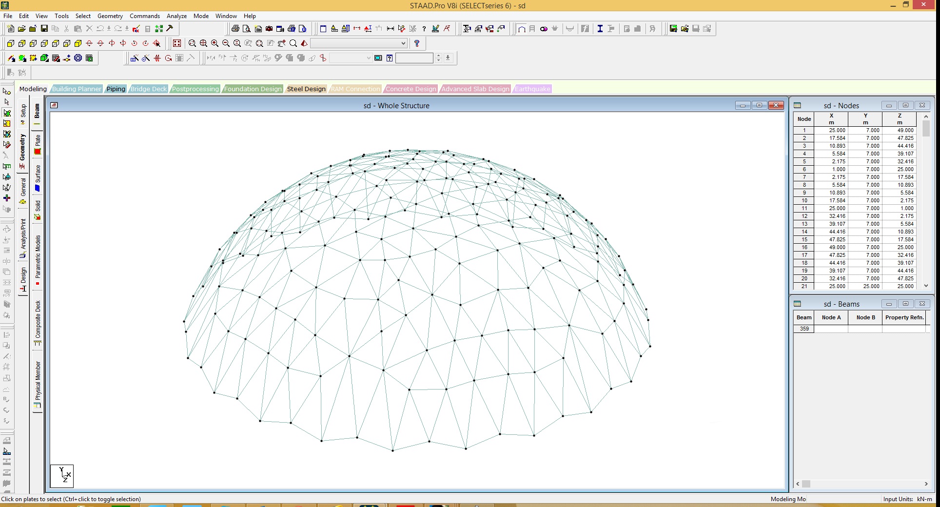 STAAD.PRO 可以通过使用自带Mesher 工具建立复杂的由板单元构成的结构。