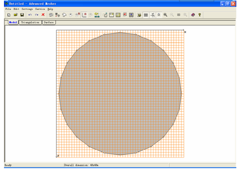 首先通过点击开始菜单程序中STAAD.PRO 程序组中的Mesher打开mesher 程序。点击工具栏上的按钮,设置绘图范围,程序默认50mX50m;点击工具栏上的