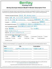 Step1: Bentley Developer Network SELECT Subscription Form _2017.pdf に記入例を参照し記入し PDF 化します。